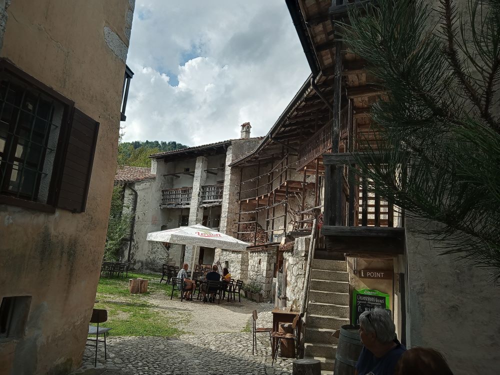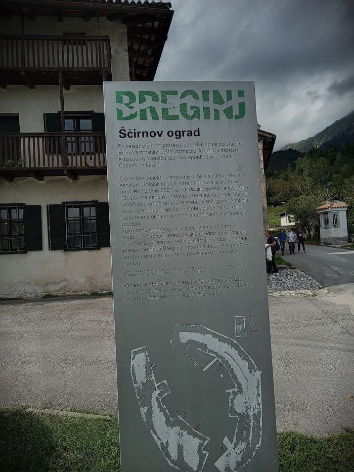 Spregovoril je o Breginju in popotresni obnovi, ko se je bilo treba odločati o tem, kako najprimerneje rešititi nastalo katastrofalno situacijo - obnavljati dolgoročno z ohranjanjem stare podobe vasi, ali čimprej poskrbeti za postavitev domov. Odločili so se za slednje, tako so vaščani danes v svojih montažnih hišah. Posebej pa so obnovili stavbni niz - Ščirnov ograd, ki tako ohranja podobo starega Breginja. Znotraj ograda so muzejski prostori s predstavitvijo nekdanje ureditve, na dvorišču pa so nam postregli s kosilom iz notranje restavracije - mineštro in značilne štruklje.