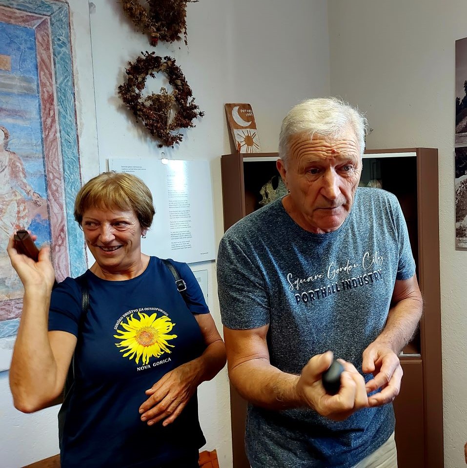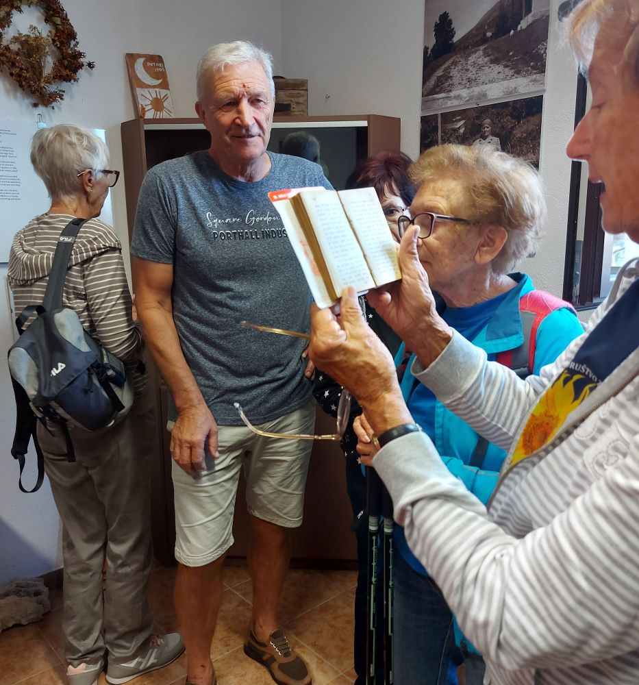 A čakalo nas je še eno doživetje. V vasi je obnovil, praktično na novo postavil hišo, gospod Daniel, Američan iz San Francisca. Tu ustvarja in živi s svojo gospo, Slovenko iz Celja. Pravi, da ga je prevzel in osvojil pogled, kakor se ponuja skozi panoransko okno, ki ga je vgradil v dnevnem prostoru hiše. Povabil nas je, da smo si ogledali vse kotičke, nekako smo se sporazumevali, a saj je videno govorilo samo zase. Res nenavadno, kaj vse se nam je ponujalo na ogled. Veliko je bilo predmetov, ki jih je napaberkoval v vasi in so njena dediščina. Resnično doživetje.